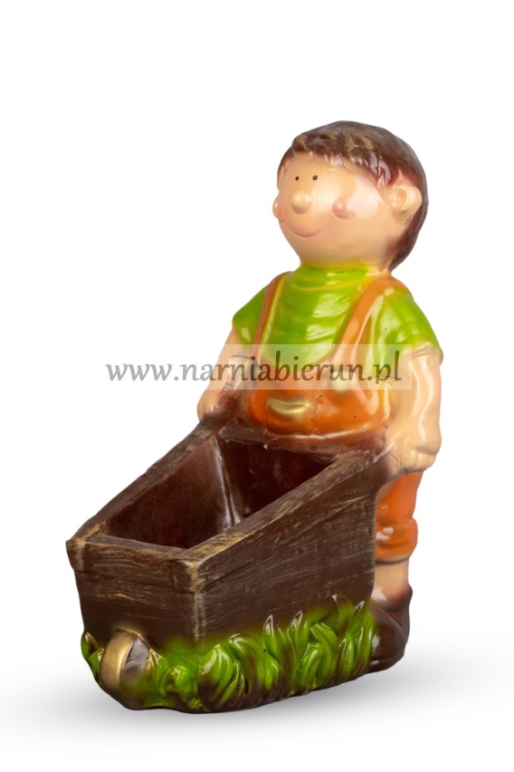 FIGURKA OZDOBNA Chłopczyk z taczką doniczką Lolek