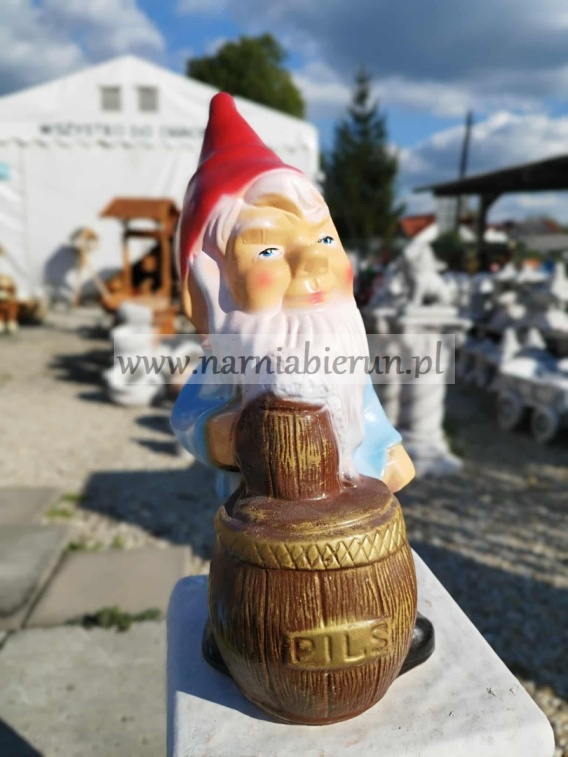 Figurka z ceramiki Krasnal skrzat krasnoludek z piwem piwosz 40 cm