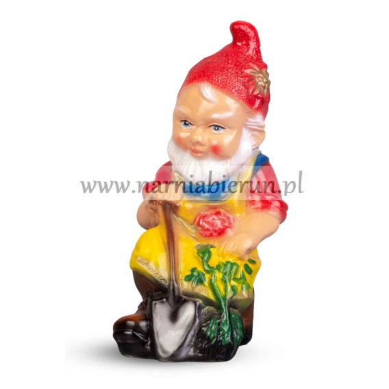 Figurka z ceramiki Krasnal z różą ogrodnik skrzat krasnoludek 35 cm