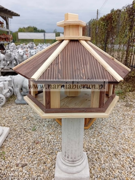 Ten karmnik dla ptaków został wykonany z wysokiej jakości drewna, co gwarantuje jego trwałość i odporność na warunki atmosferyczne. Drewno jest naturalnym materiałem, który doskonale komponuje się w ogrodzie lub na tarasie. Karmnik ma solidną konstrukcję, która zapewnia bezpieczne miejsce dla ptaków do jedzenia.