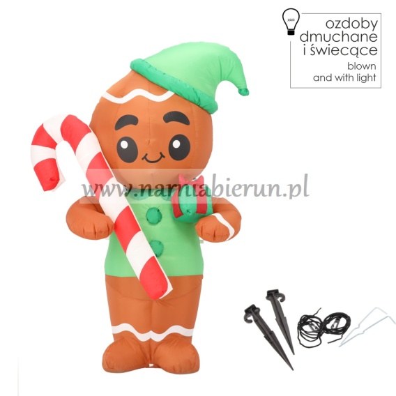 Dmuchany piernik z podświetleniem LED to idealny dodatek do Twojego świątecznego wystroju. Ta urocza i urokliwa ozdoba wprowadzi niepowtarzalny klimat świąt do Twojego domu, ogrodu lub miejsca pracy. Dodatkowe podświetlenie LED sprawi, że wyjątkowo będzie się prezentował po zmroku.