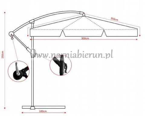 - Dzięki zastosowaniu korbki możliwe jest składanie i rozkładanie parasola